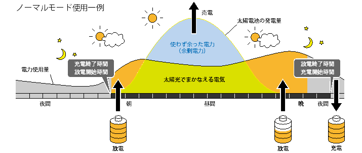 ノーマルモードは太陽光発電システムがつくった電力を、蓄電システムに蓄電せず売電します。