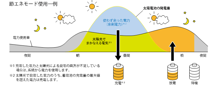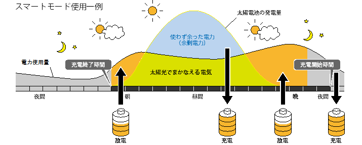 スマートモードは太陽光発電システムがつくった電力と、安い深夜電力を有効に活用します。