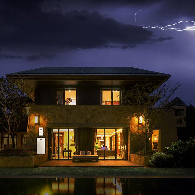 太陽光発電システムの電力を利用するので、万が一停電が発生しても一定の電力は確保できます。