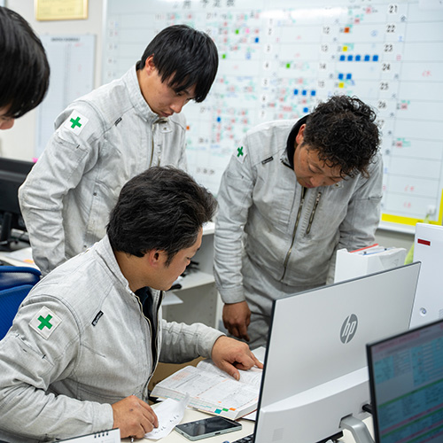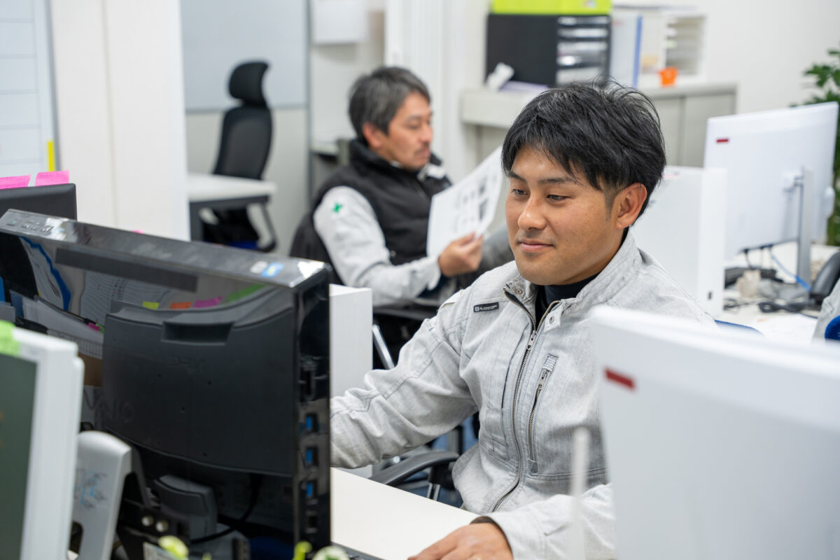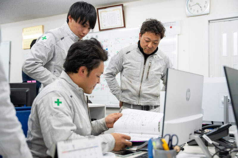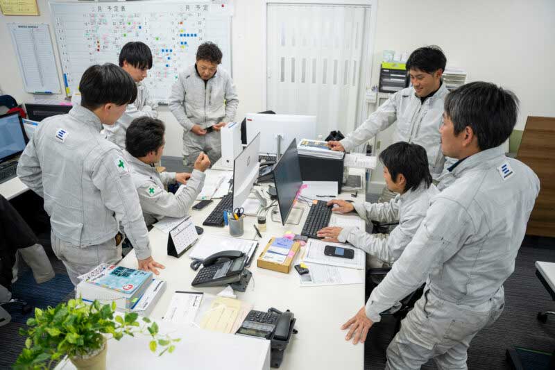 工事スタッフも内勤者も20代から40代のスタッフが在籍しており、社長をはじめどの部署でも壁を作らずに楽しく働ける会社です。