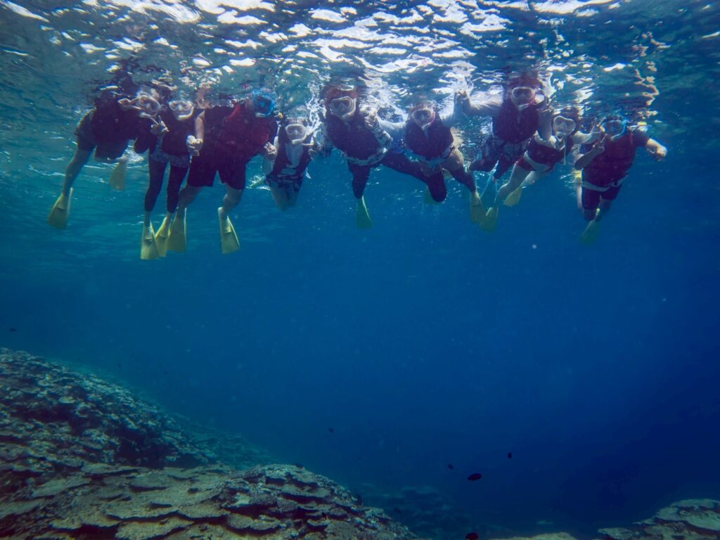 釣り、サイクリング、シュノーケリング、ダイビング、それぞれ思い思いに楽しめるのがエネバンの社員旅行です!