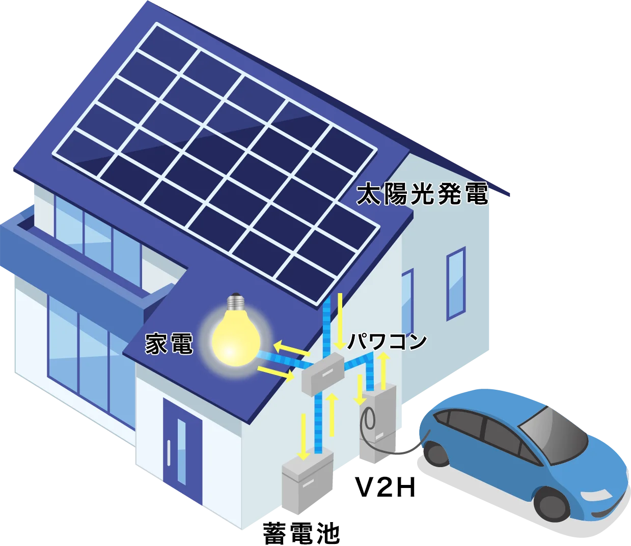 お任せするのは、太陽光や蓄電池、V2H、EV充電器、エコキュートといった省エネ設備やそれに伴って発生する水道、電気等の付帯工事。